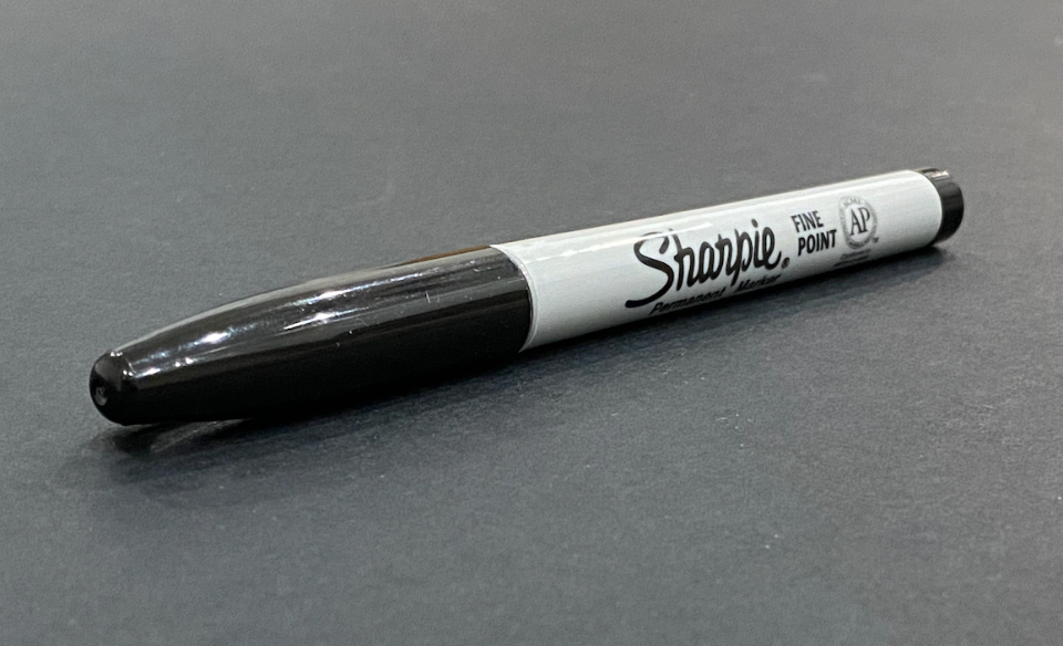 It writes just like a Sharpie, but the black cap at the end that's normally used for secret stamping or secret writing is GLUED solidly in place and will not come off if an inquisitive spectator wants to take a closer look at it.
