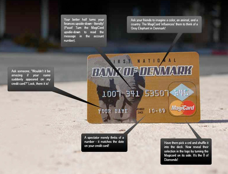 The Mark Jenest Magicard comes complete with the very realistic custom-designed credit card plus detailed illustrated instructions.